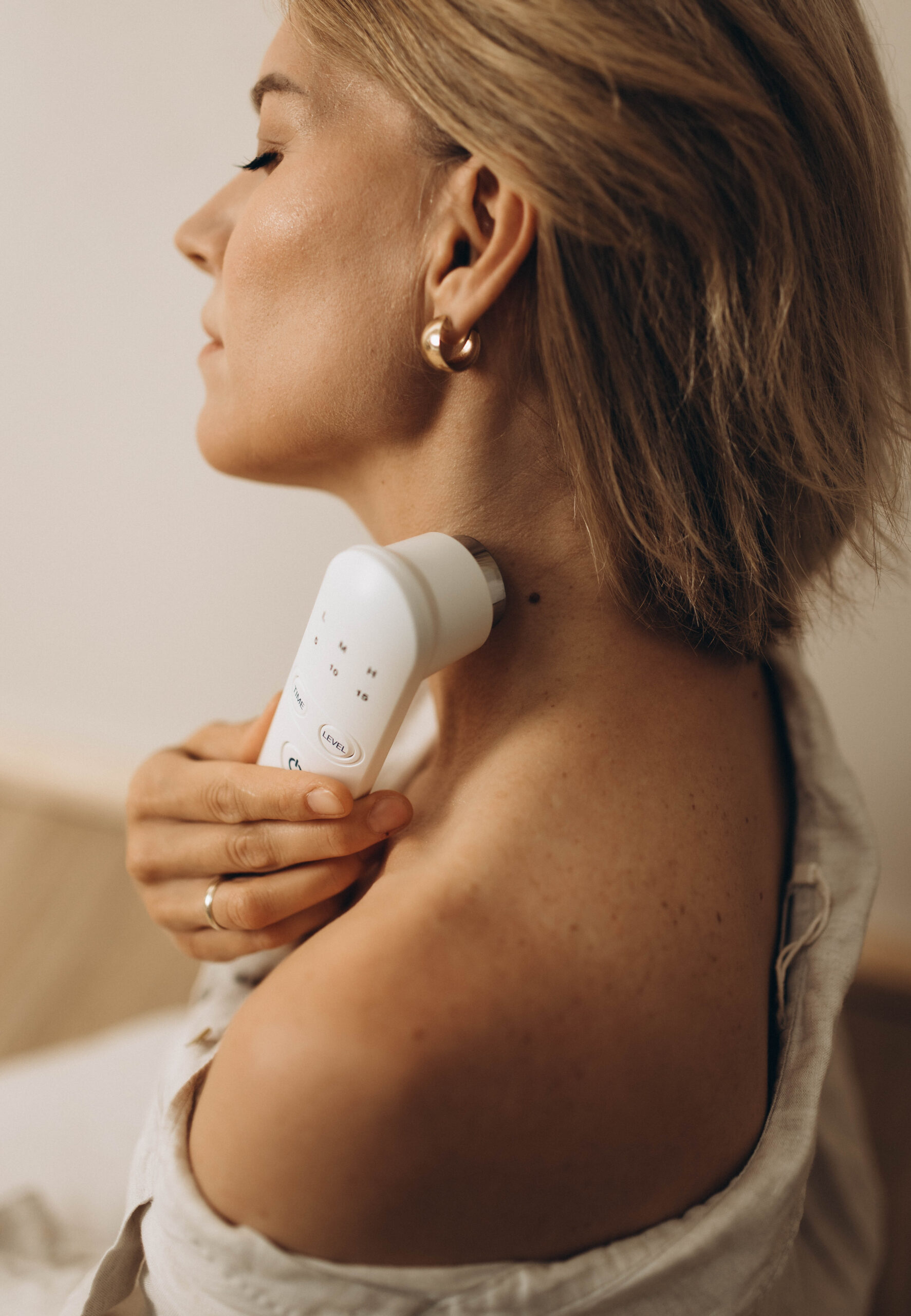 - Dzięki ciśnieniu akustycznemu powstają mikrowibracje tkanek, wykonywany jest masaż tych obszarów, do których nie można dotrzeć ręcznie.